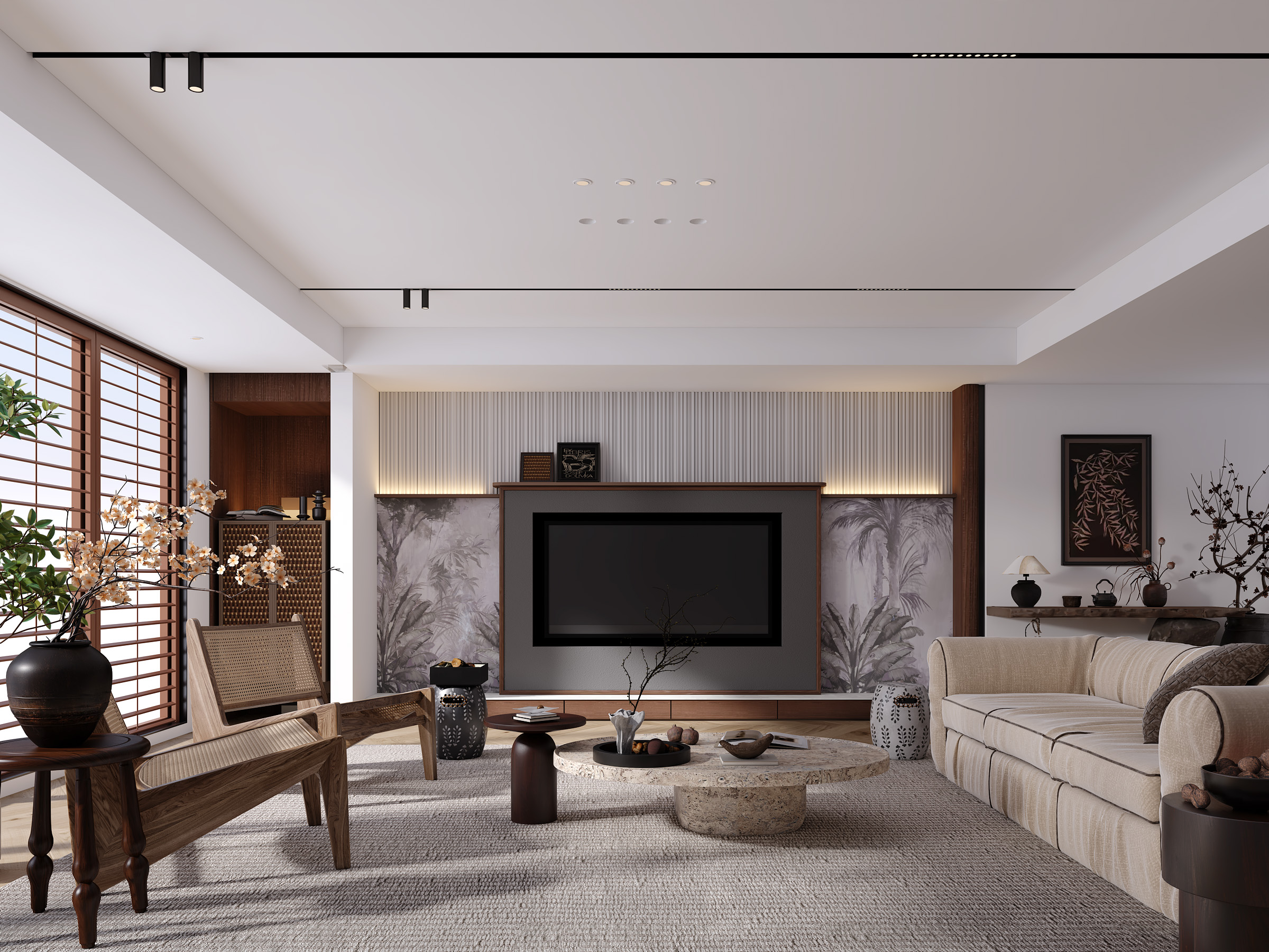 新中式9A木電視背景墻,別墅與平層的設(shè)計哲學(xué)…