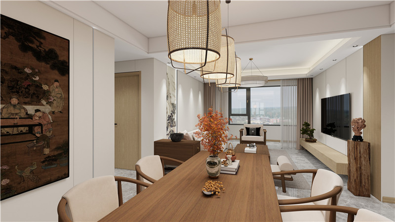 深淺胡桃木與新中留白藝術(shù) 演繹都市平層生活范本……
