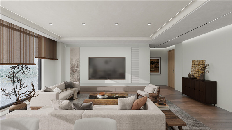 走進(jìn)這套新中式風(fēng)格的客廳,你會(huì)立刻被其獨(dú)特的韻味所吸引。海創(chuàng)的設(shè)計(jì)師巧妙地將傳統(tǒng)中式元素與現(xiàn)代生活需求相結(jié)合,創(chuàng)造出既有文化底蘊(yùn)又不失時(shí)尚感的空間。